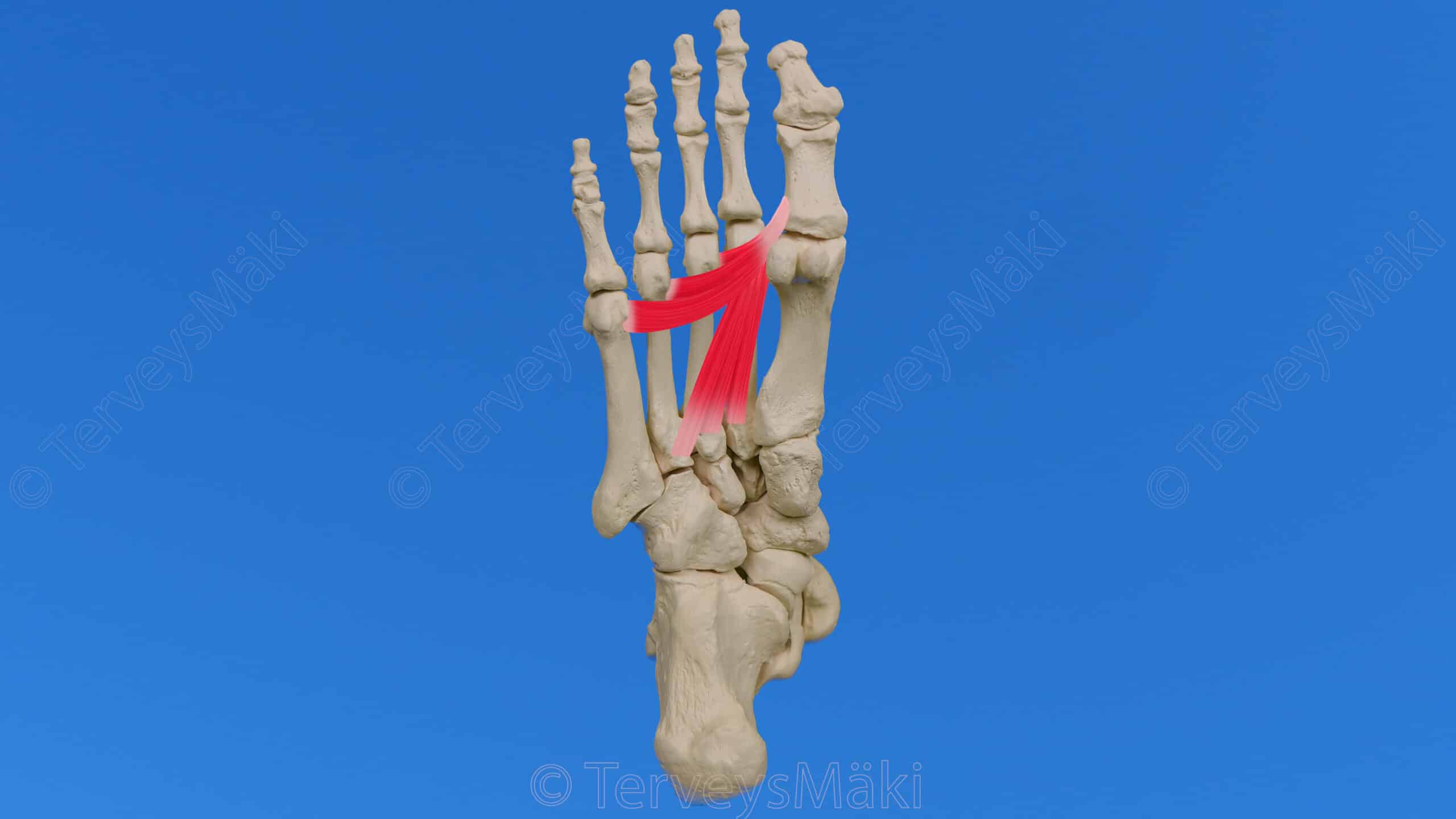 Kuva adductor hallucis lihaksen lähtökohdat & kiinnityskohdat