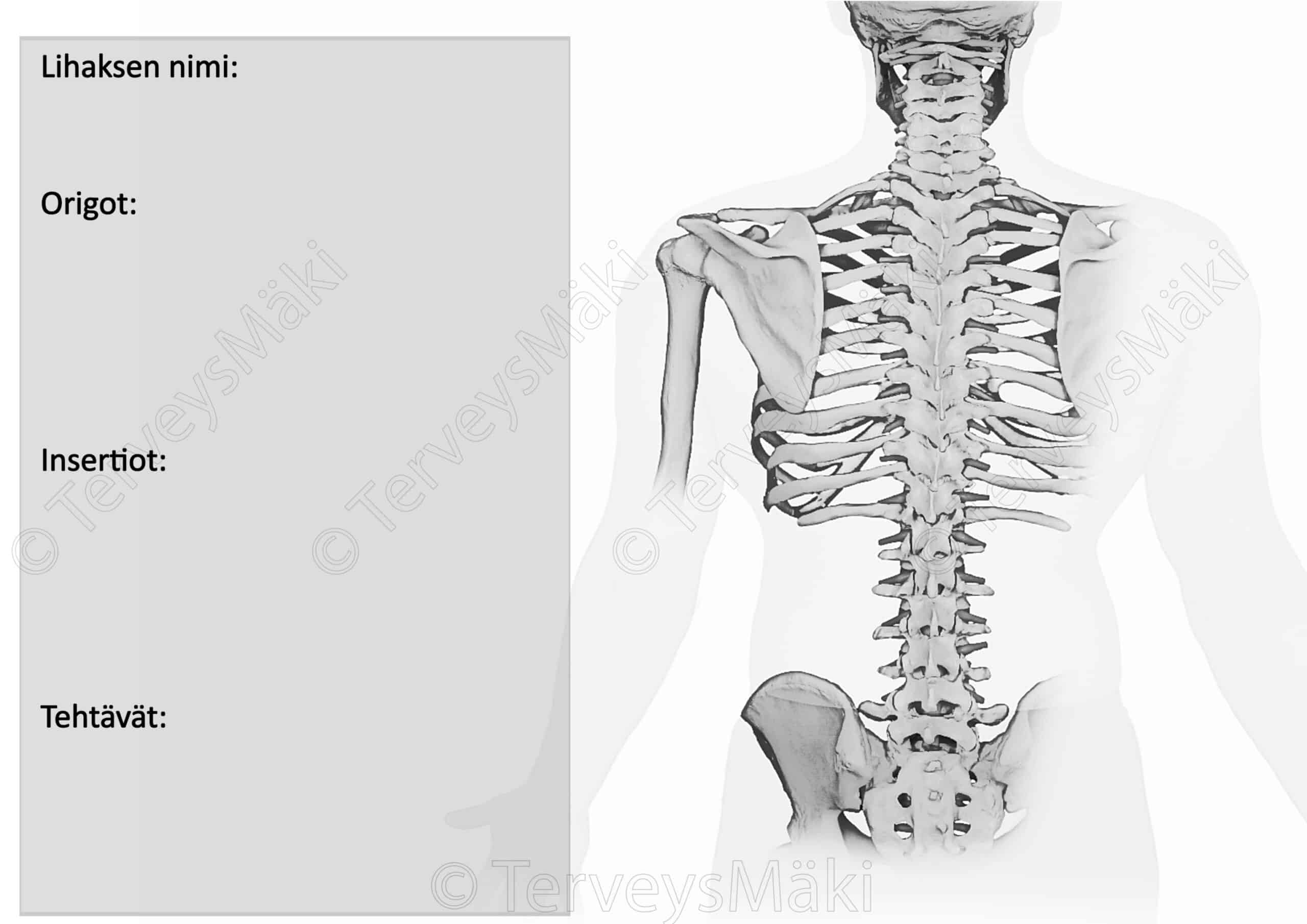 1. Väritä kuvan luupohjaan lihaksen lähtö- ja kiinnityskohdat.
