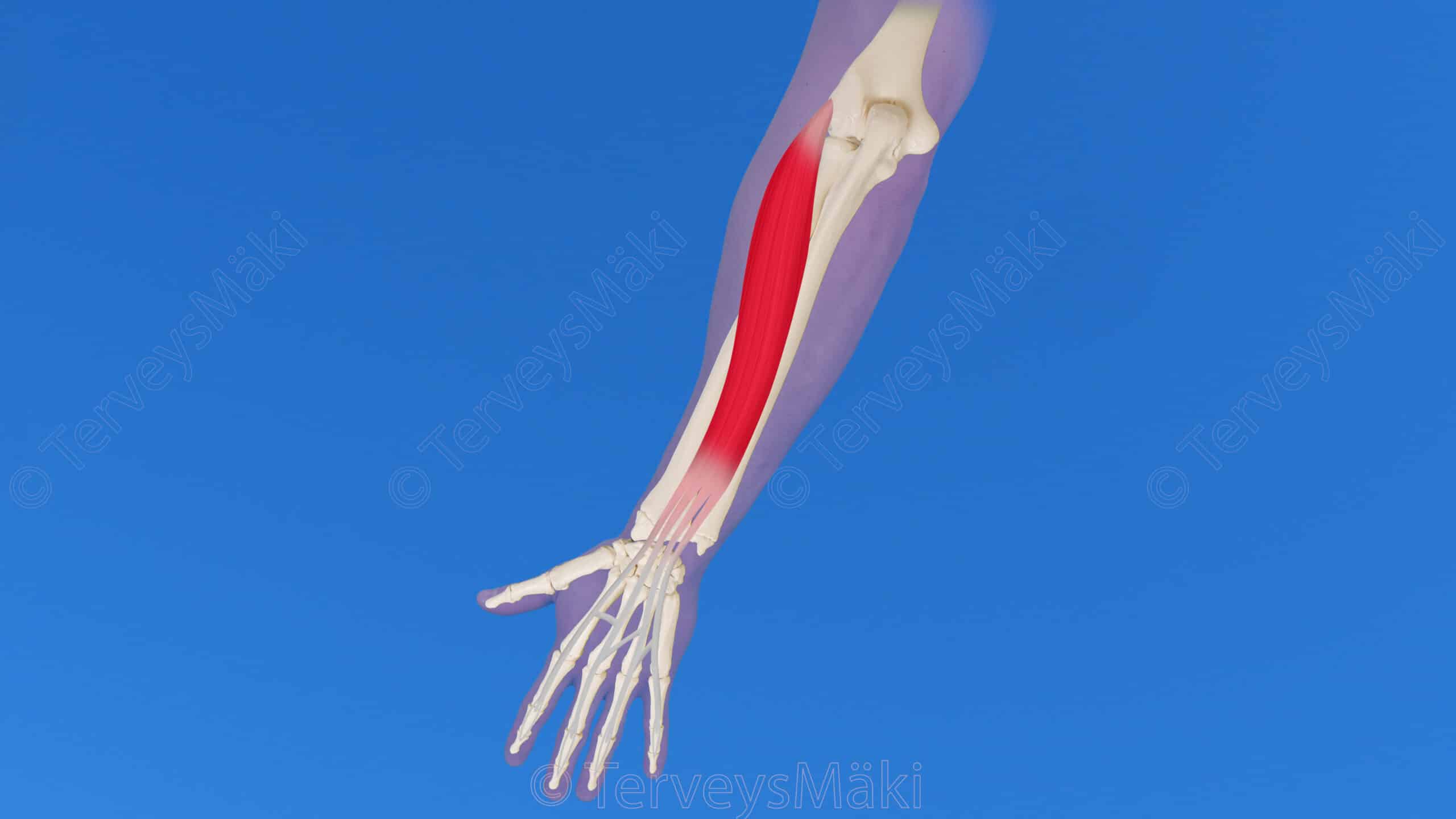 Kuva extensor digitorum lihaksen lähtökohdat & kiinnityskohdat