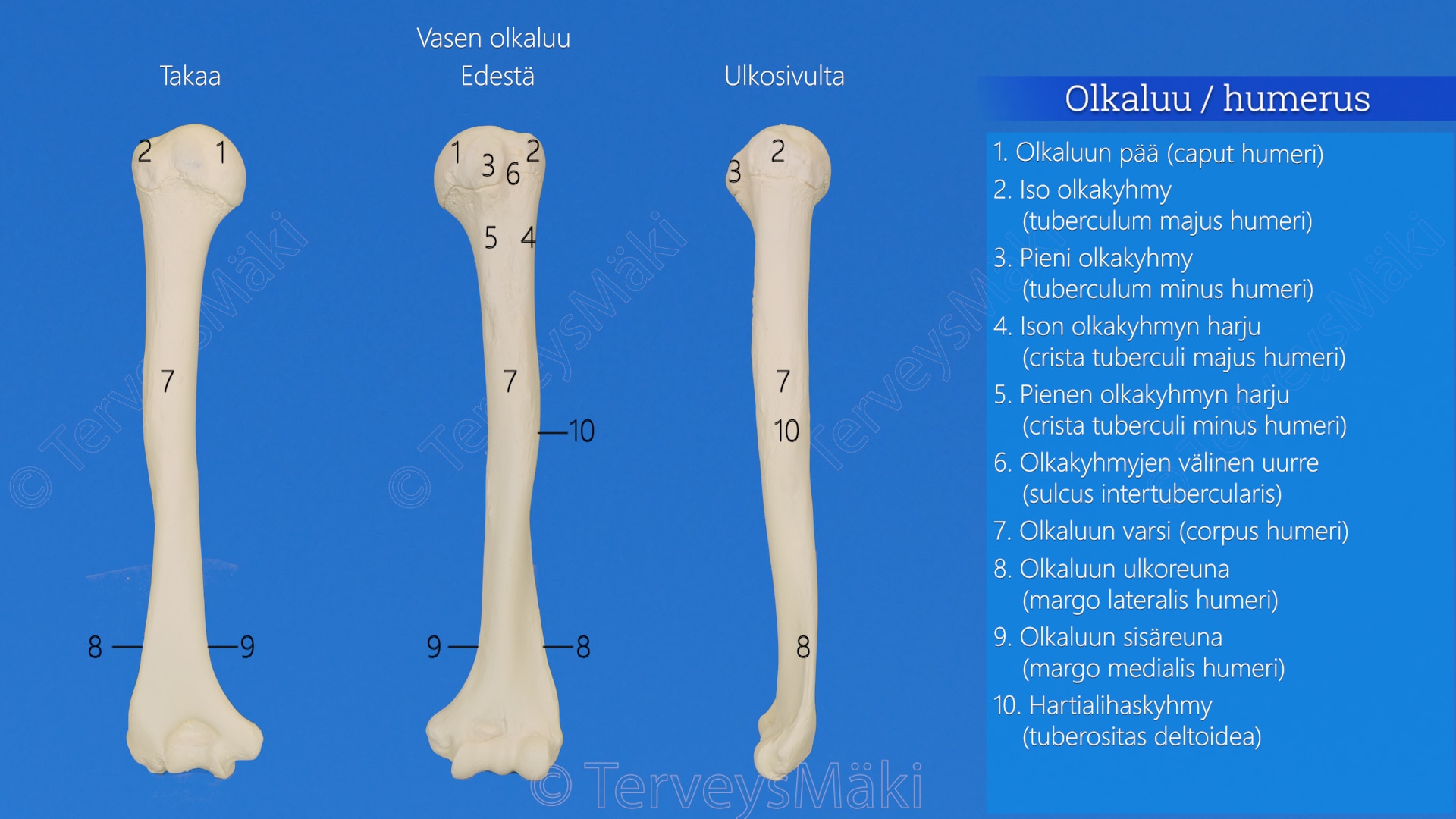 Olkaluun yläosa: pää, kaulat ja kyhmyt