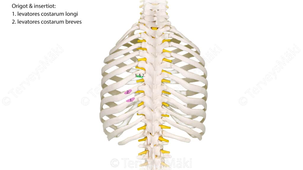 Kuva levatores costarum lihasten lähtökohdat & kiinnityskohdat