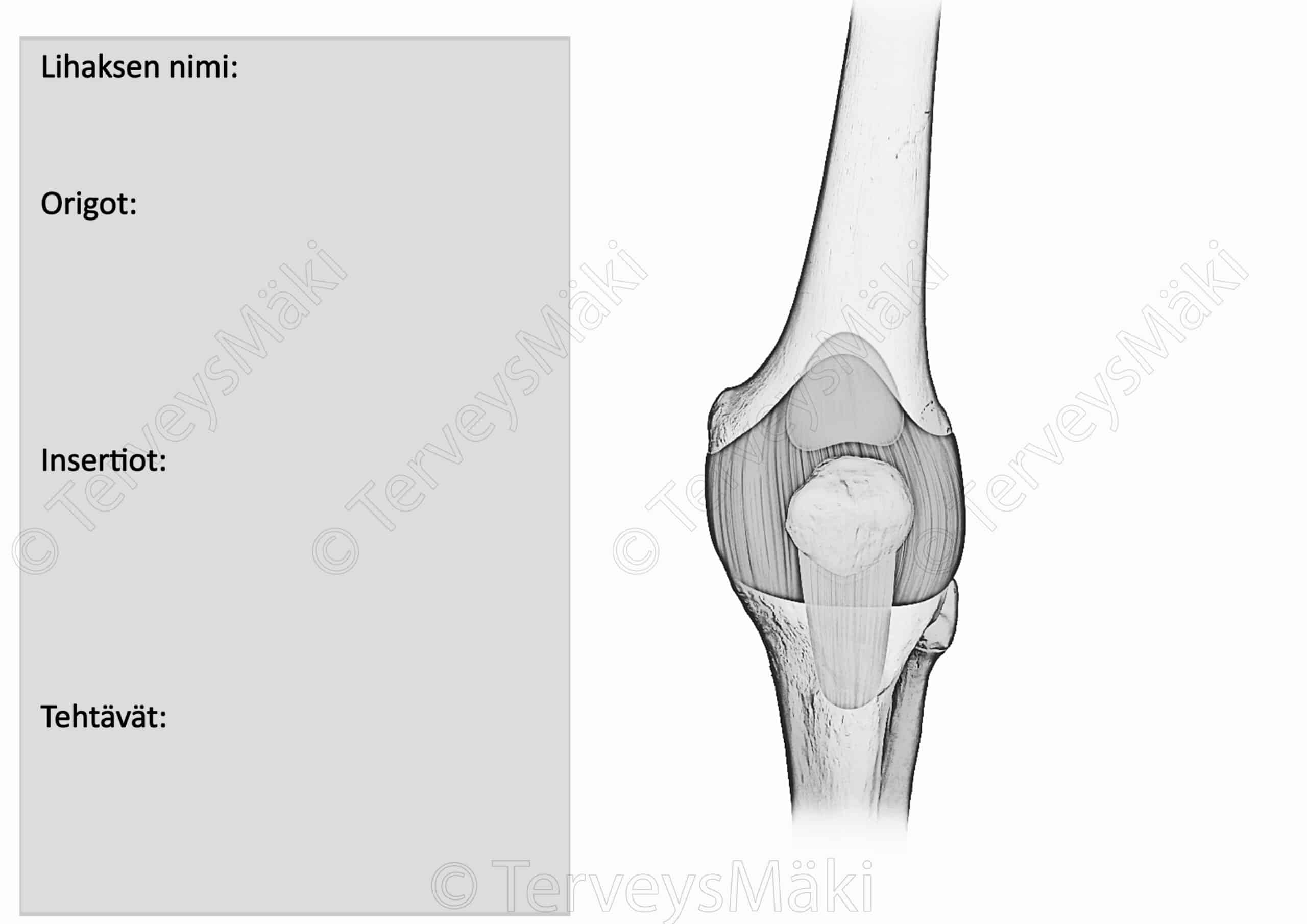 Kuva m. articularis genus lihaksen lähtökohdat & kiinnityskohdat