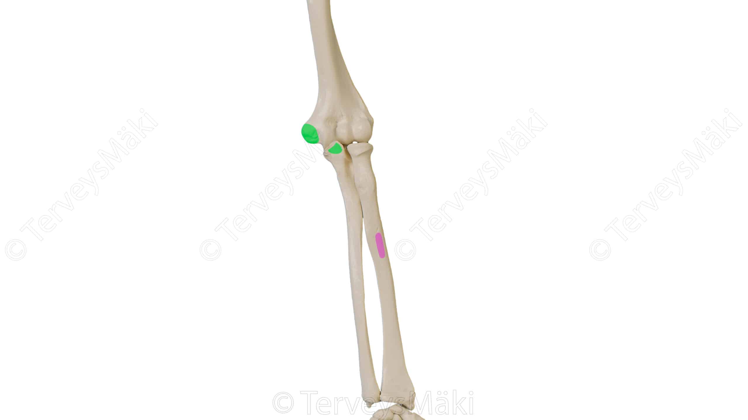 Kuva pronator teres lihaksen lähtökohdat & kiinnityskohdat