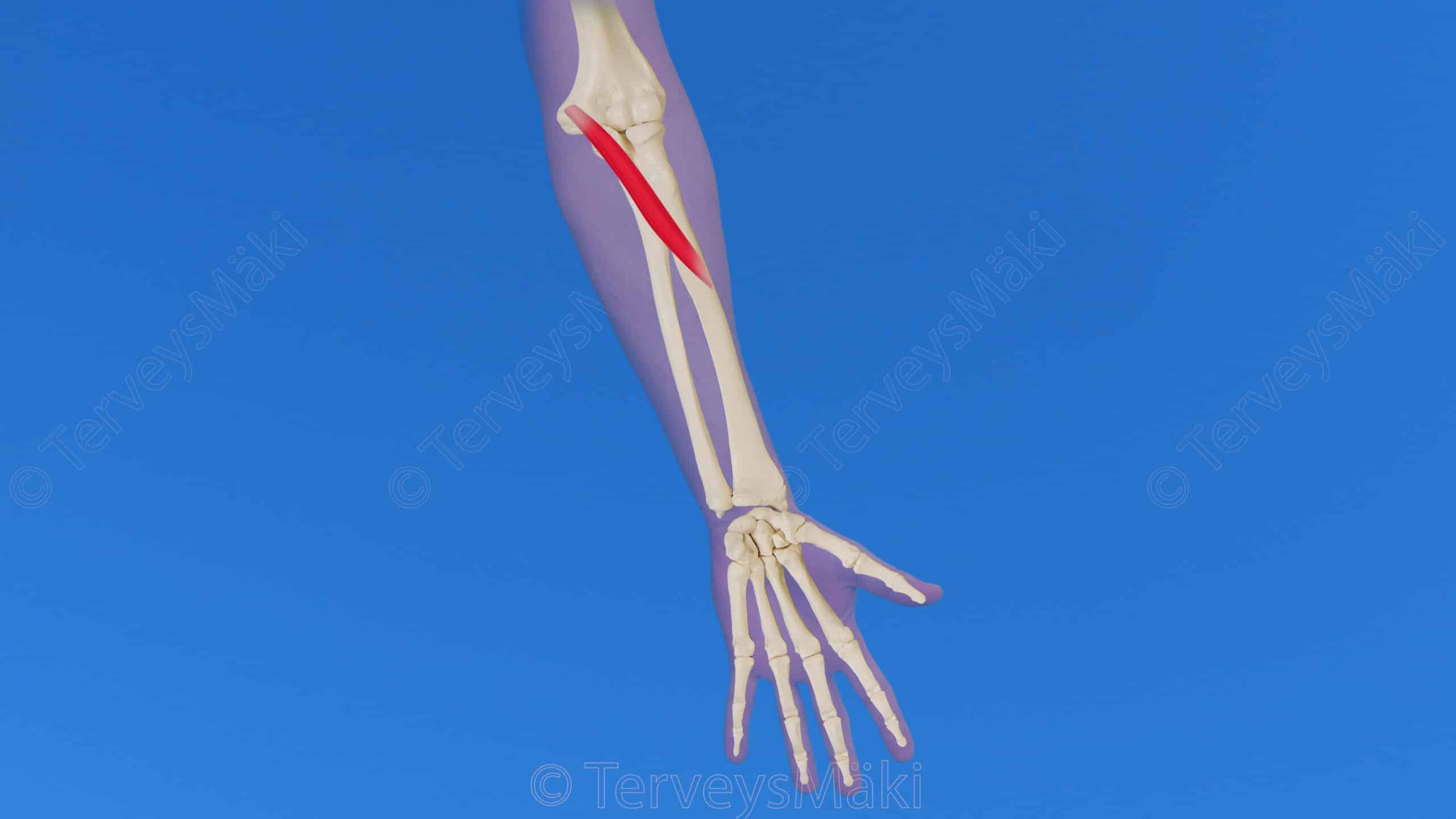 Palpoidessa asiakkaan on parasta olla joko istuma-asennossa tai selinmakuulla. Kun aloitat palpointia, ota tukeva, mutta lempeä ote asiakkaan kyynärvarresta. Vastusta asiakkaan tekemää vuorotahtista ja kevyttä pronaatioliikettä. On tärkeää, että asiakas välttää ranteen koukistamista samanaikaisesti. Tämä estää ranteen värttinäluunpuoleisen koukistajalihaksen aktivoinnin, jotta se ei häiritsisi kyseisen lihaksen tunnistusta.