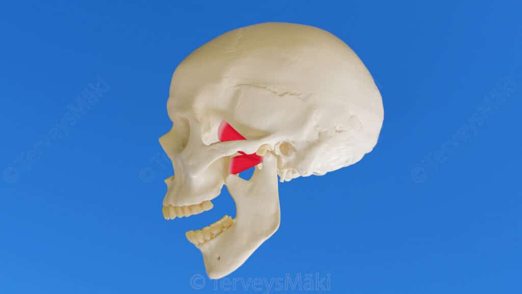 Kuva pterygoideus lateralis lihaksen lähtökohdat & kiinnityskohdat