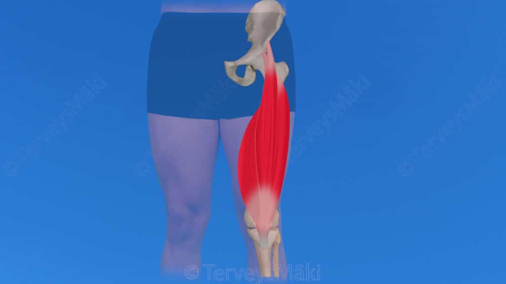 Kuva quadriceps femoris lihaksen lähtökohdat & kiinnityskohdat