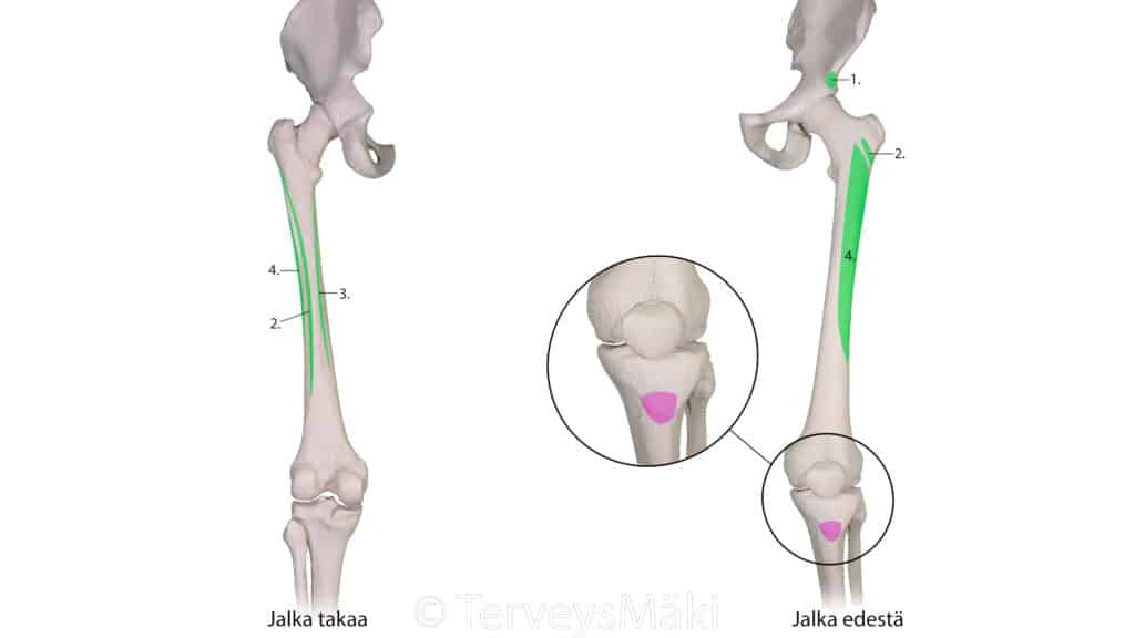 -Linea aspere femoris • reisiluun harju; labium laterale • ulompi harjanne