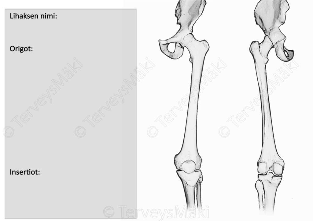 - Piirrä toisen kuvan pohjaan kyseessä olevan lihaksen lihasrunko.