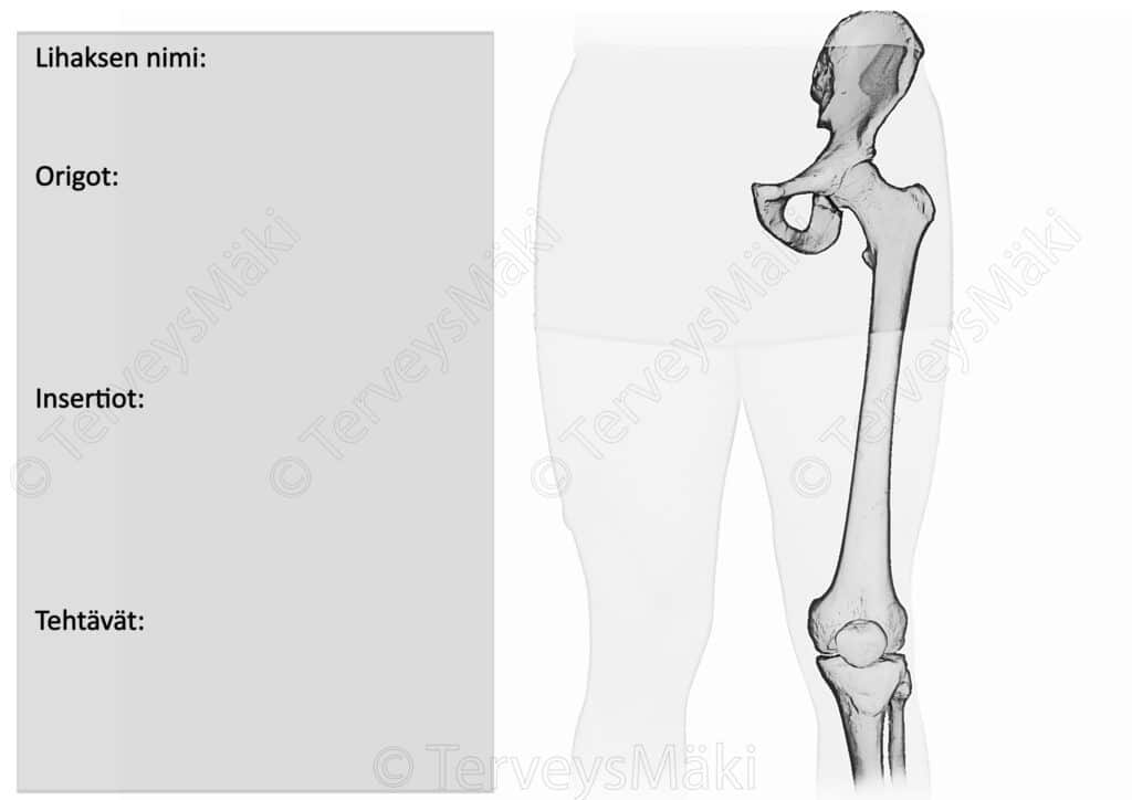 - Lihaksen nimi suomeksi ja latinaksi.