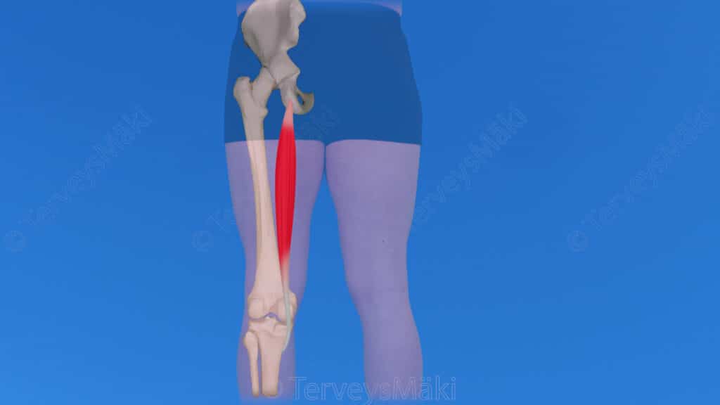 Lihaksen palpointi on helpointa, kun asiakas on vatsamakuuasennossa. Aloita paikantamalla istuinkyhmy ja polvitaivekuopan sisäreuna. Nämä maamerkit auttavat hahmottamaan lihaksen sijainnin ja kulun.