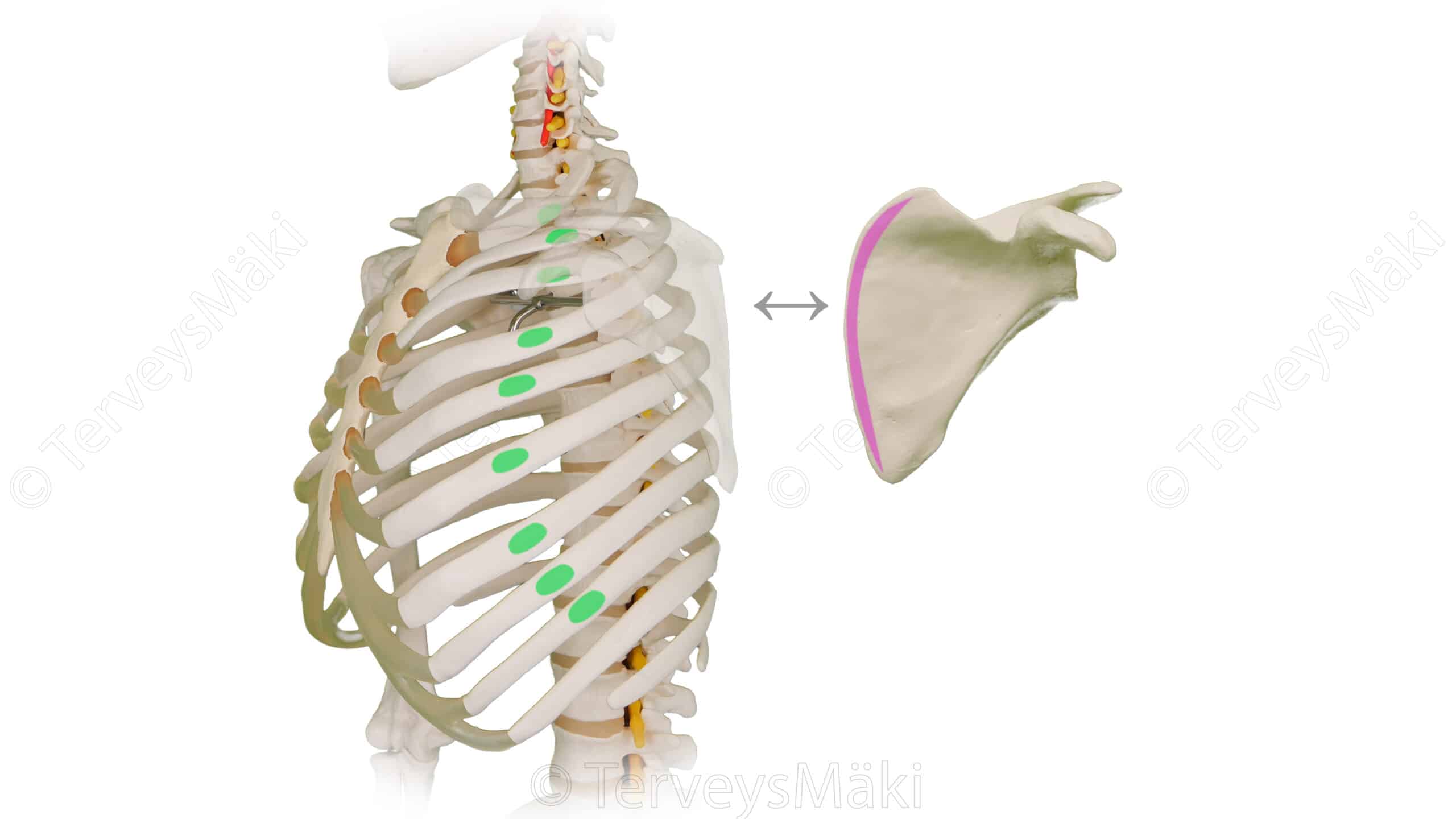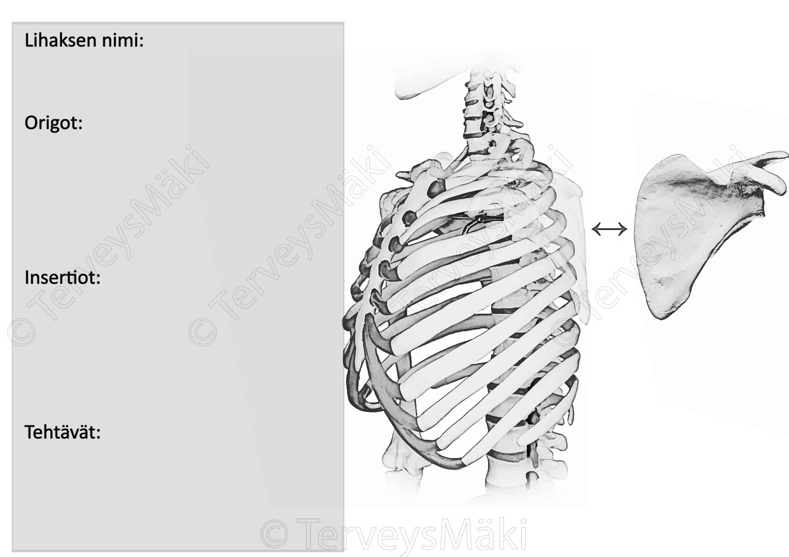 Kuva serratus anterior lihaksen lähtökohdat & kiinnityskohdat