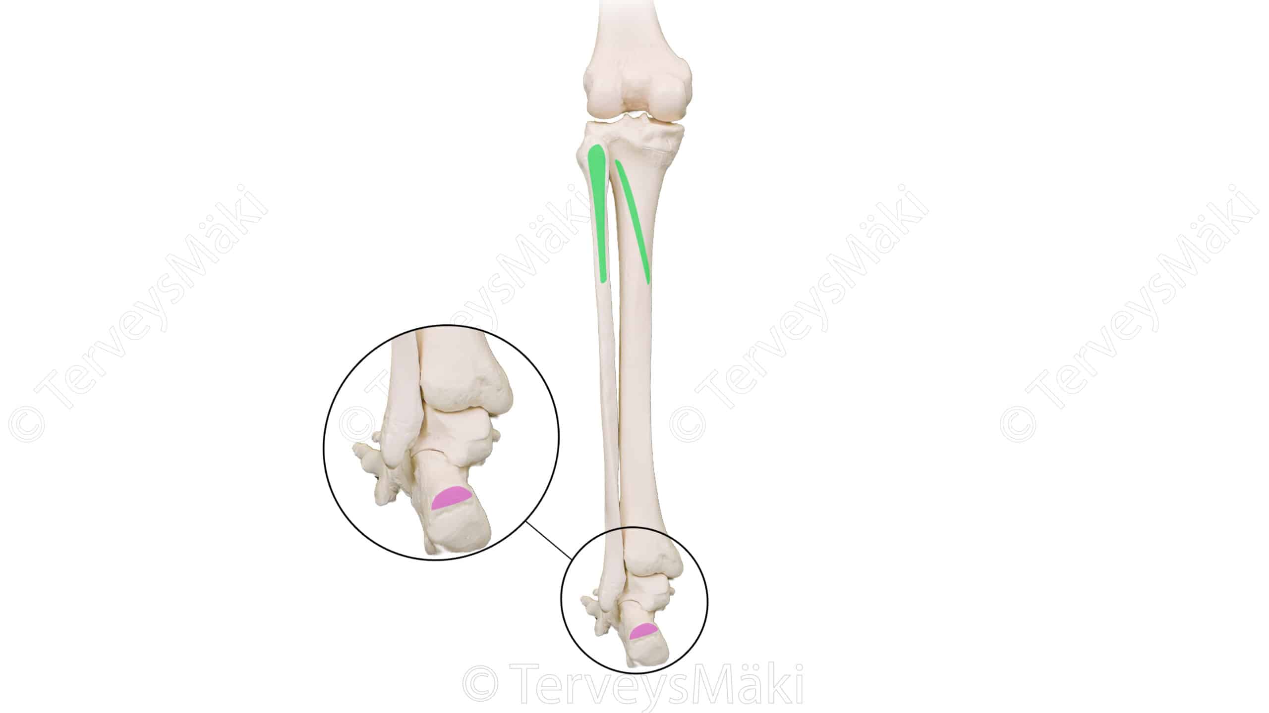 -Fibula • pohjeluun takapinnan yläkolmannes; caput fibulae • pohjeluun pää