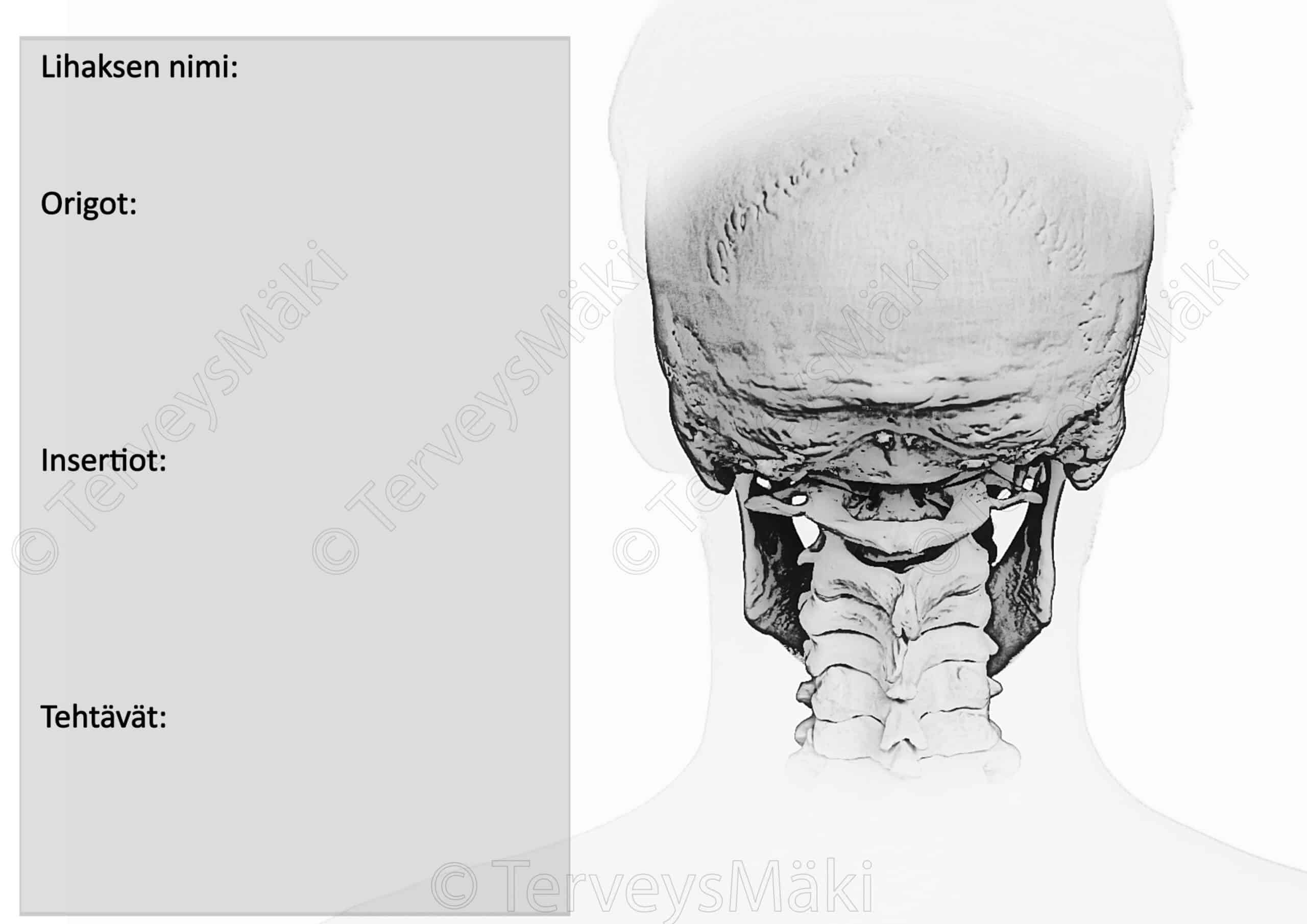 Kuva suboccipitalis lihasten lähtökohdat & kiinnityskohdat