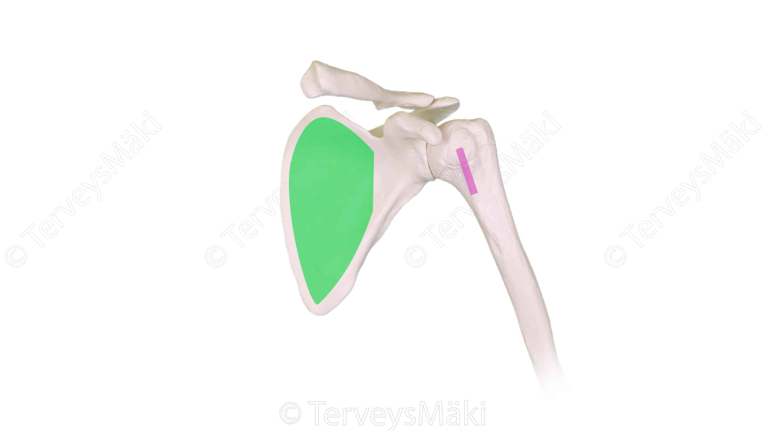 Kuva subscapularis lihaksen lähtökohdat & kiinnityskohdat