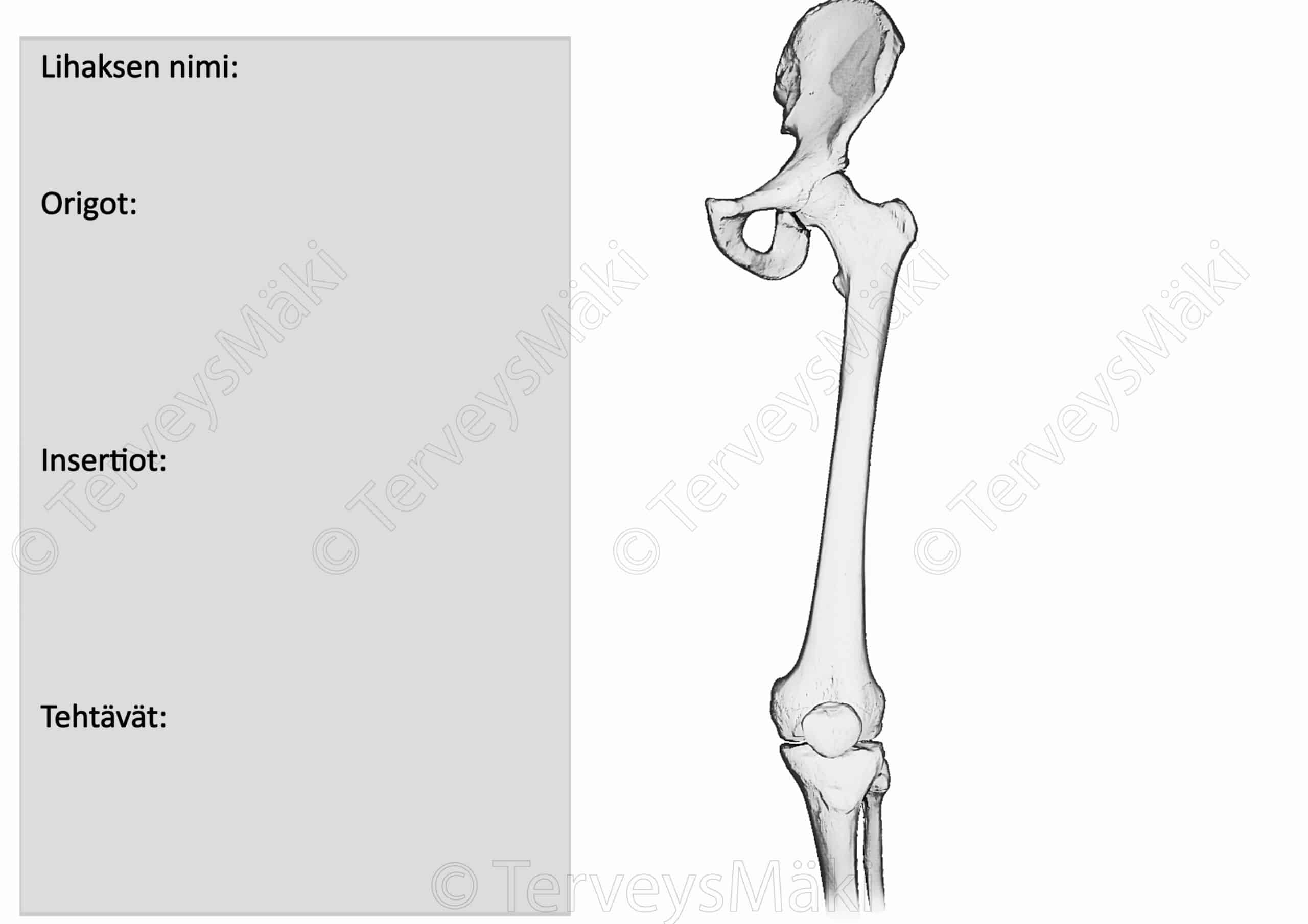 1. Väritä kuvan luupohjaan lihaksen lähtö- ja kiinnityskohdat.