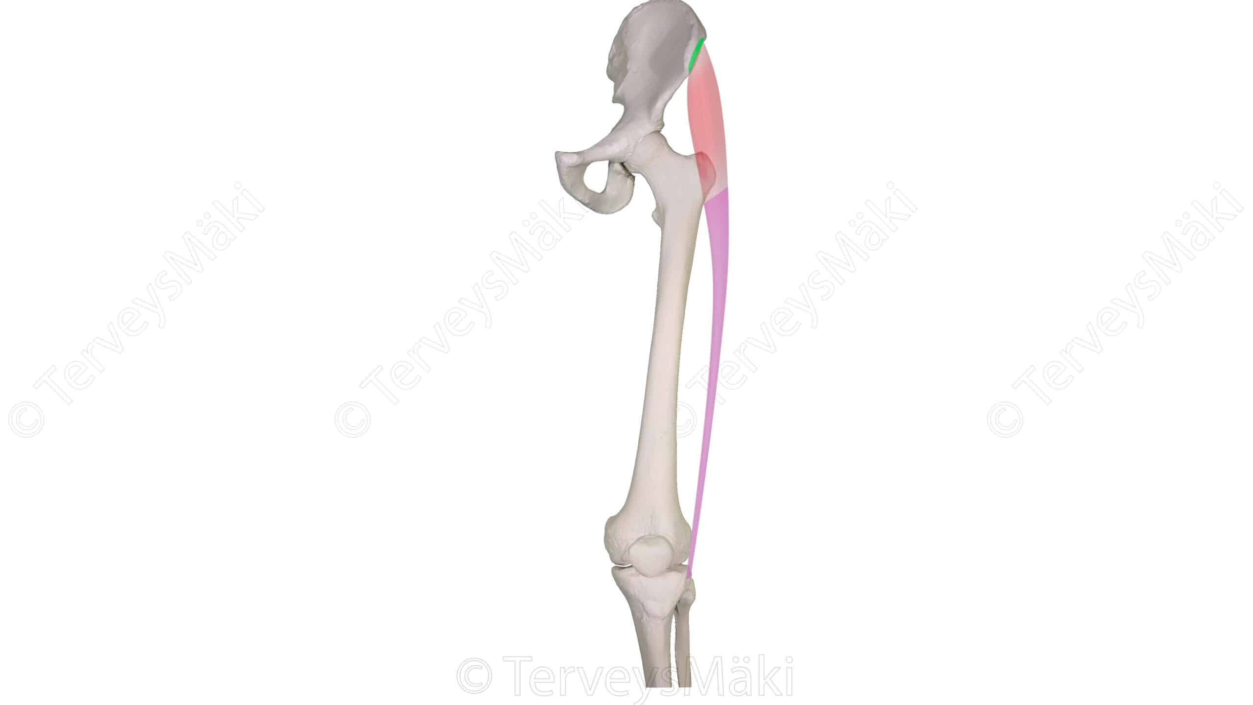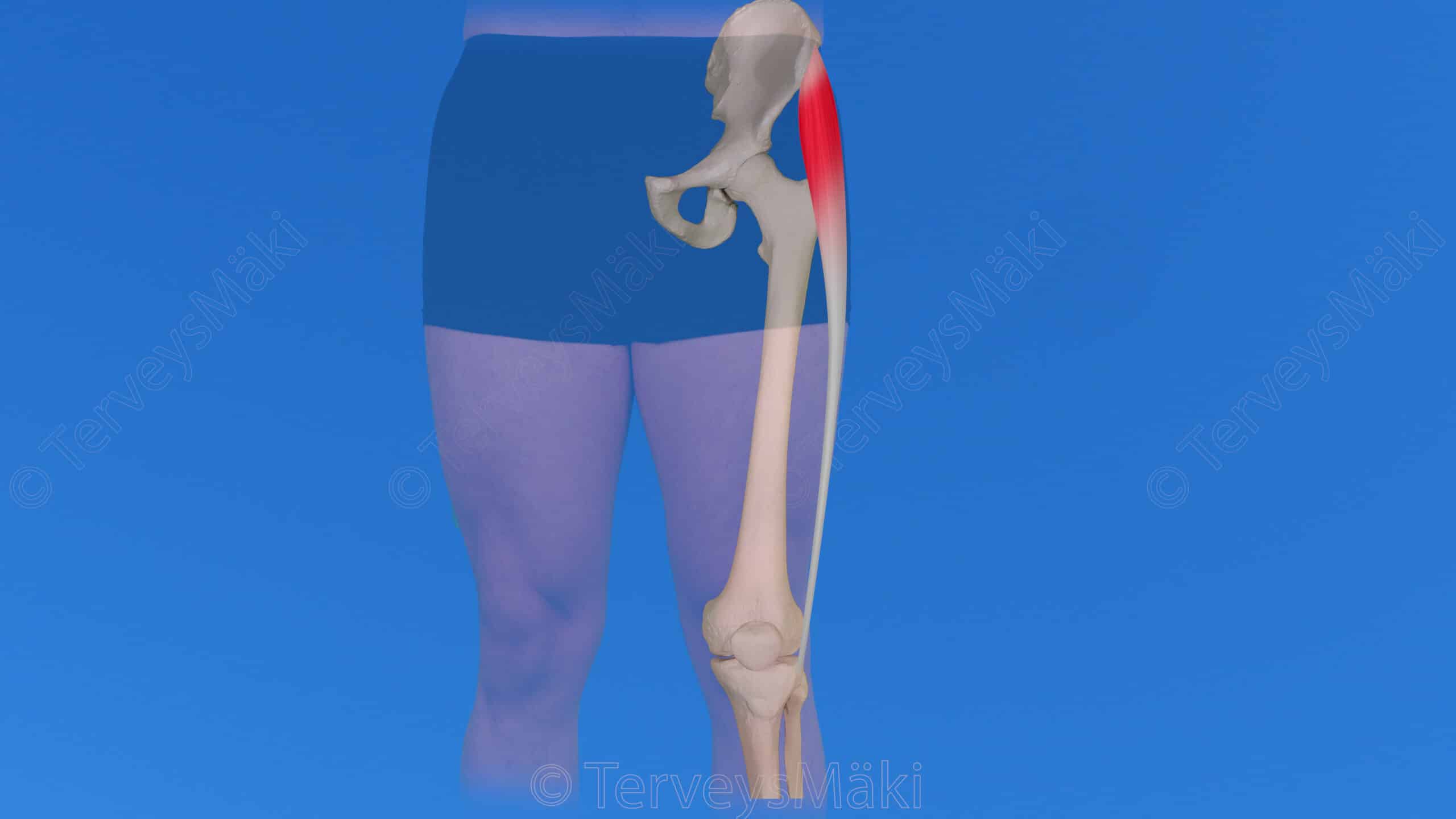 Kuva tensor fasciae latae lihaksen lähtökohdat & kiinnityskohdat