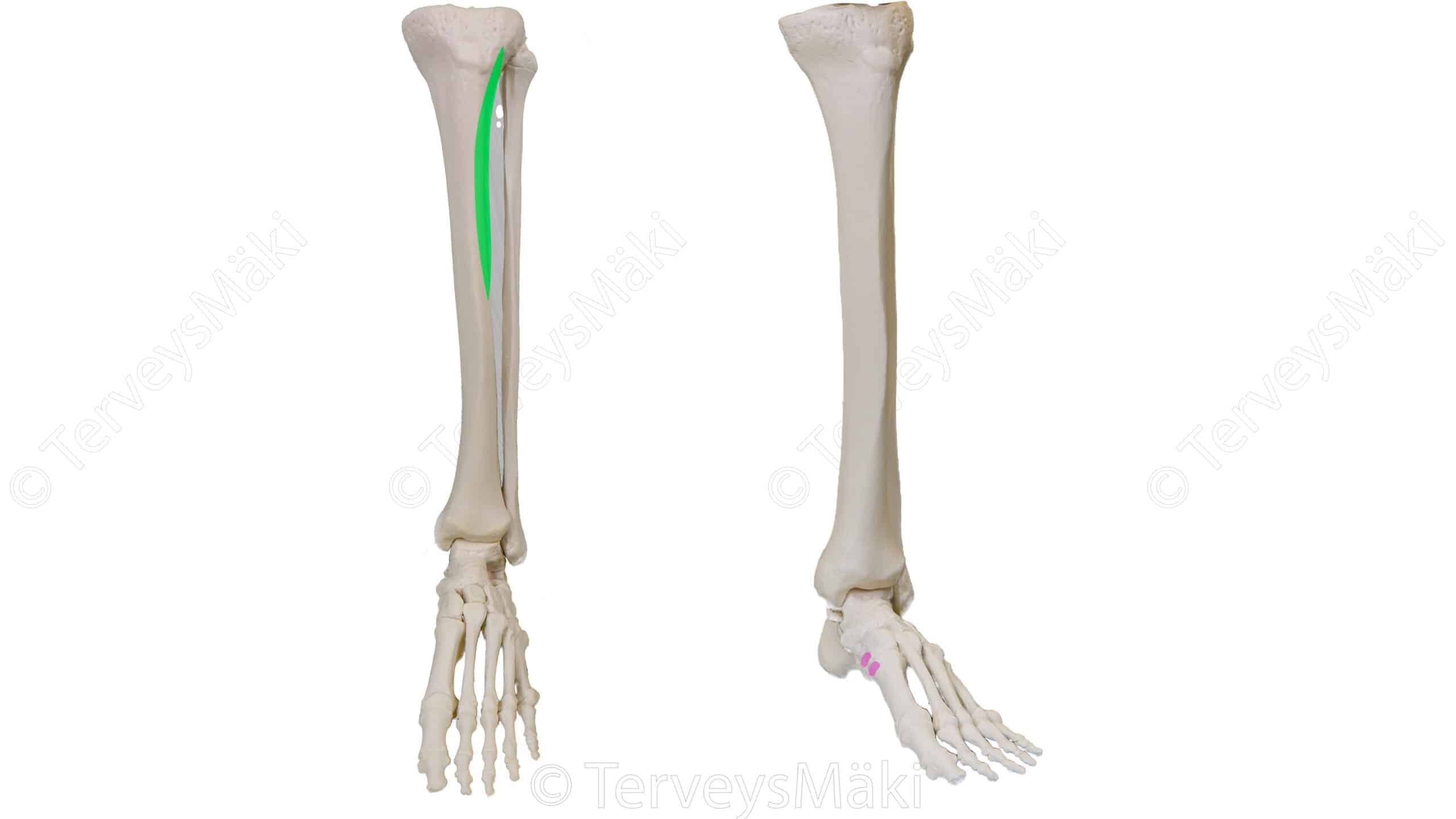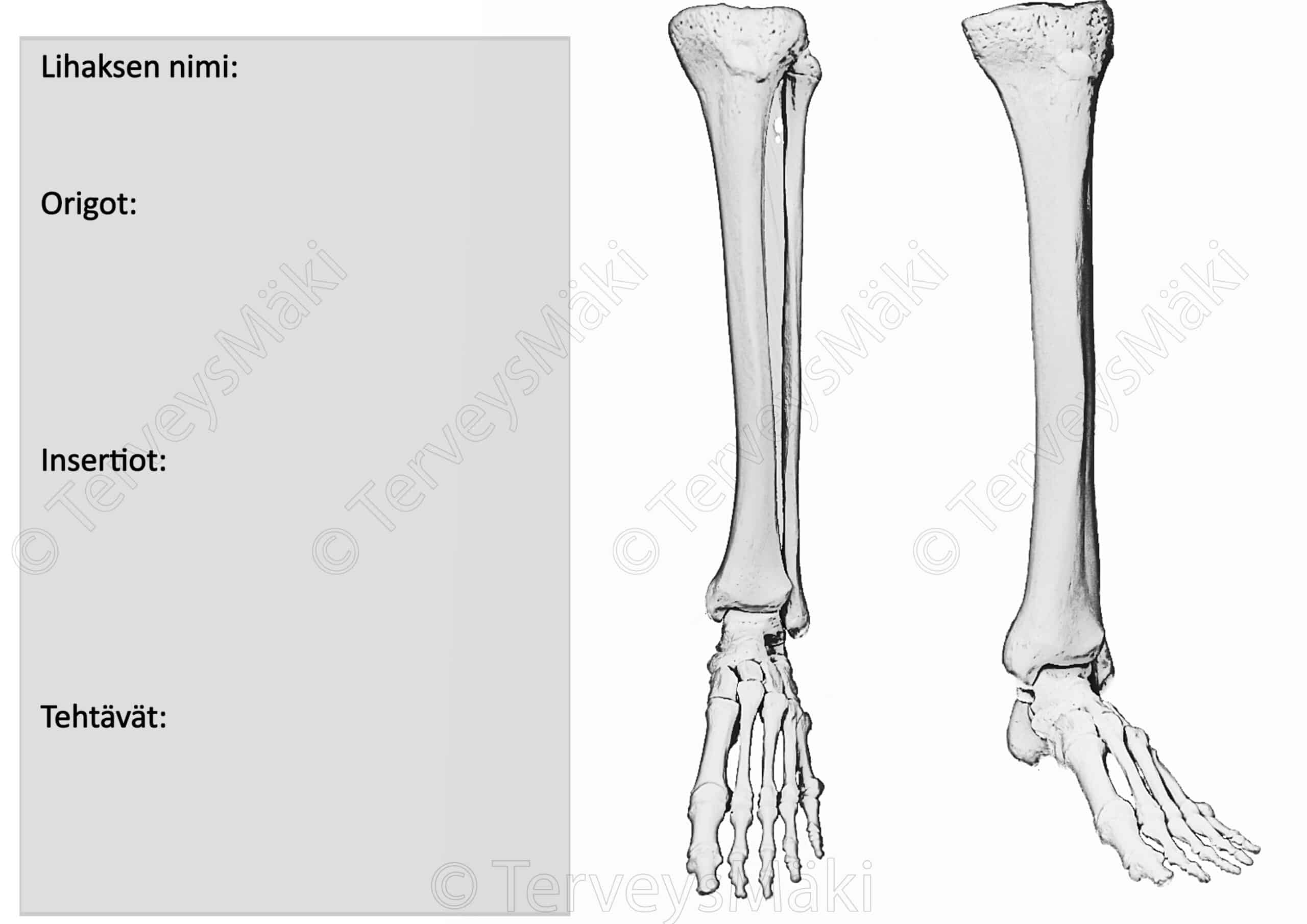 Kuva tibialis anterior lihaksen lähtökohdat & kiinnityskohdat