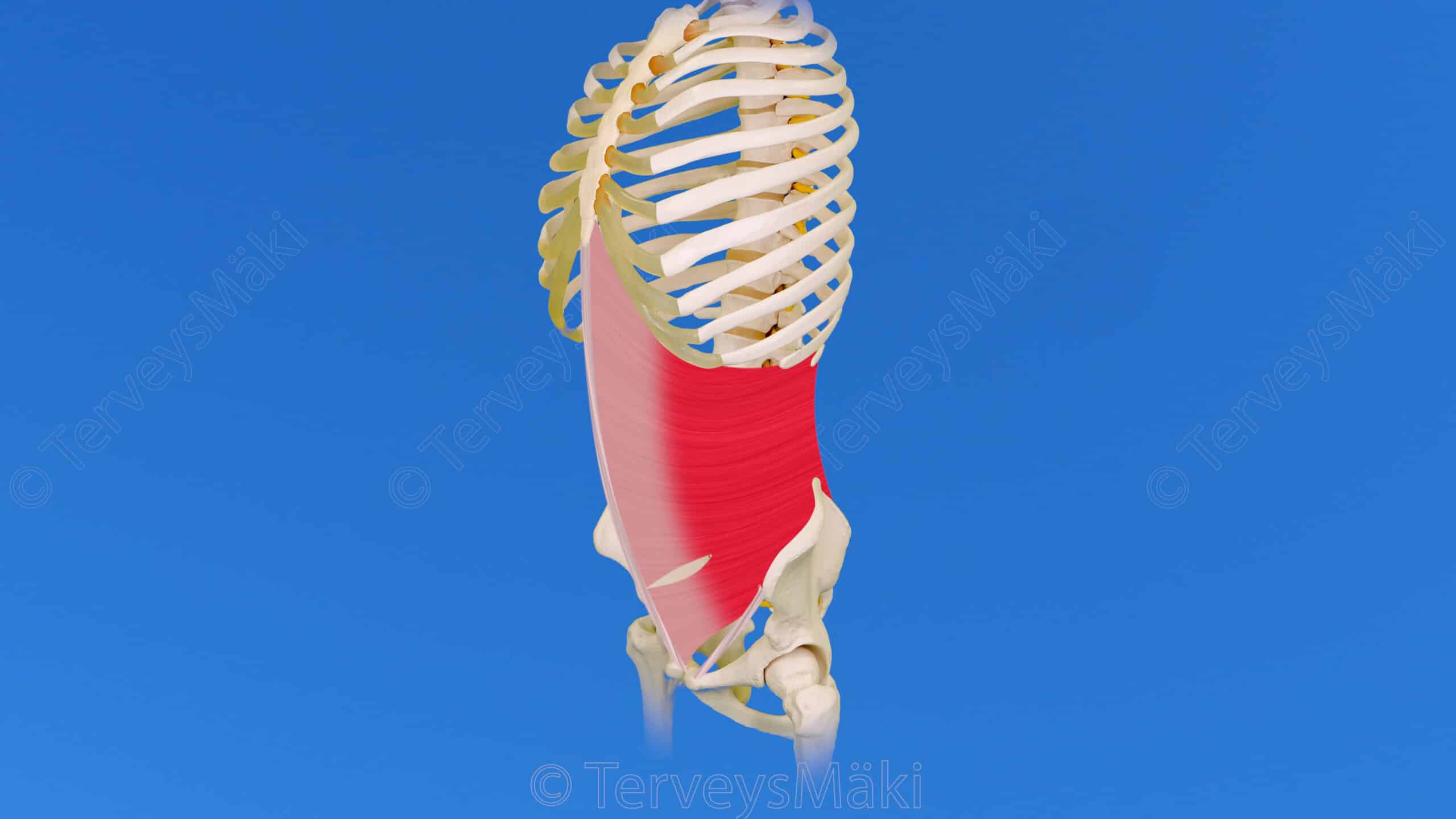 Kuva transversus abdominis lihaksen lähtökohdat & kiinnityskohdat