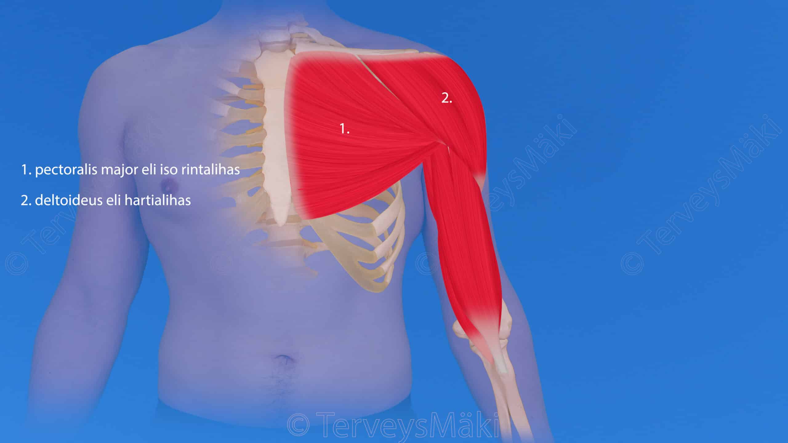 Hartialihas ja iso rintalihas ovat voimakkaita ja pinnallisia lihaksia, jotka vaikuttavat merkittävästi olkanivelen liikkeisiin ja toimintaan. Iso rintalihas, joka peittää alleen pienen rintalihaksen ja solislihaksen, osallistuu muun muassa olkanivelen koukistukseen ja lähennykseen. Pieni rintalihas ja solislihas puolestaan tukevat lapaluun ja solisluun toimintoja.